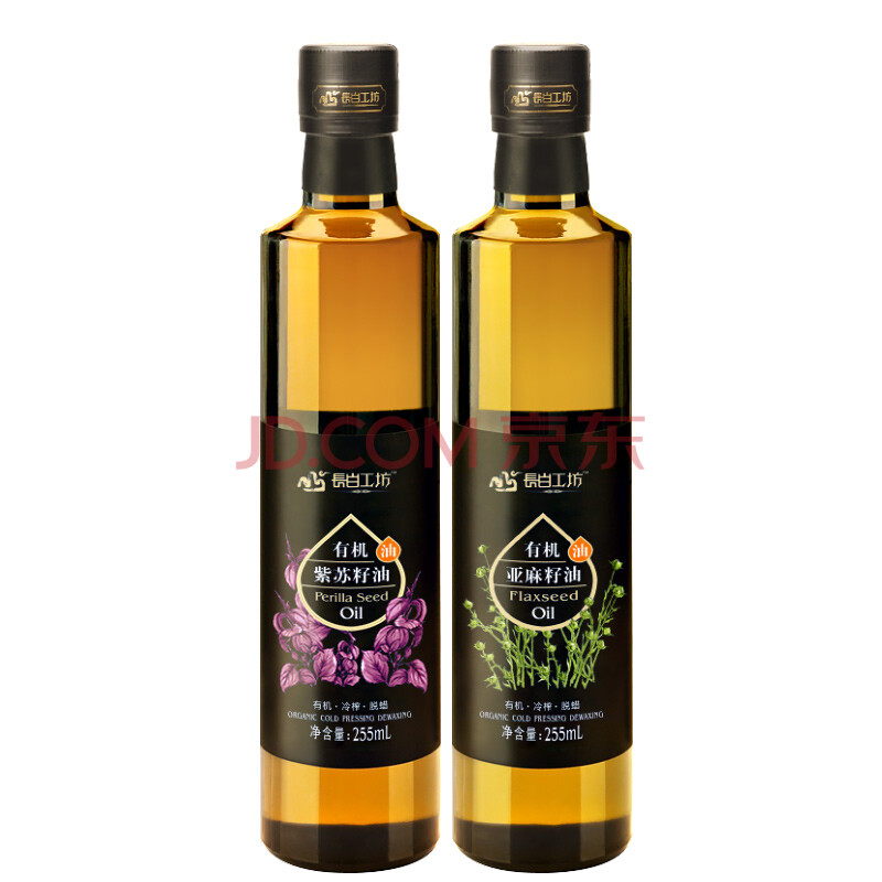 商品相册:长白工坊 四项有机 直饮亚麻籽油紫苏籽油 255ml*2组合食用油高亚麻酸第