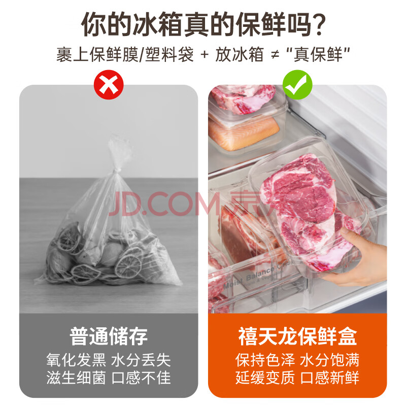商品相册:禧天龙冰箱保鲜盒食品级冰箱收纳盒密封盒蔬菜水果冷冻盒 4.5L第