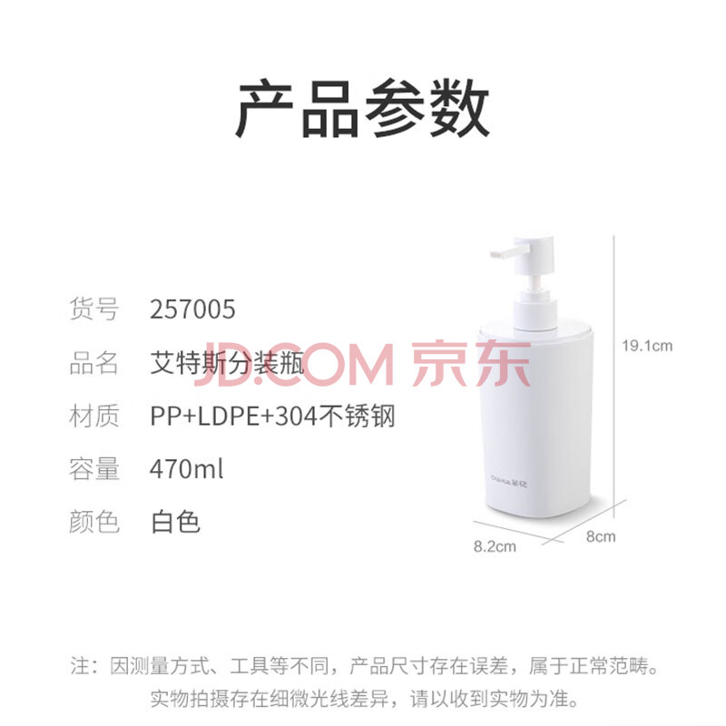 商品相册:茶花 分装瓶 居家浴室乳液瓶收纳瓶 白色 1只装第1张/共9