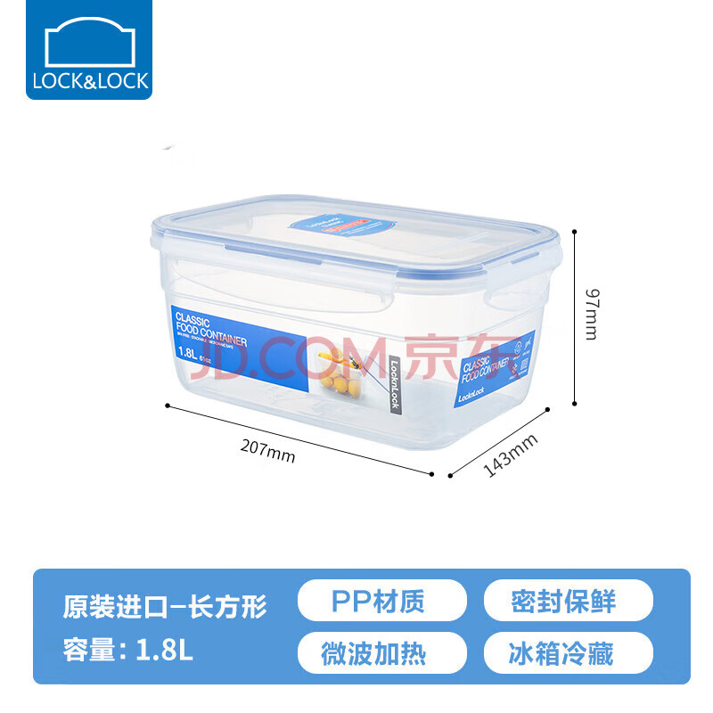 商品相册:乐扣乐扣 进口保鲜盒 微波炉饭盒塑料餐盒密封便当冰箱收纳盒长方形1.8L第