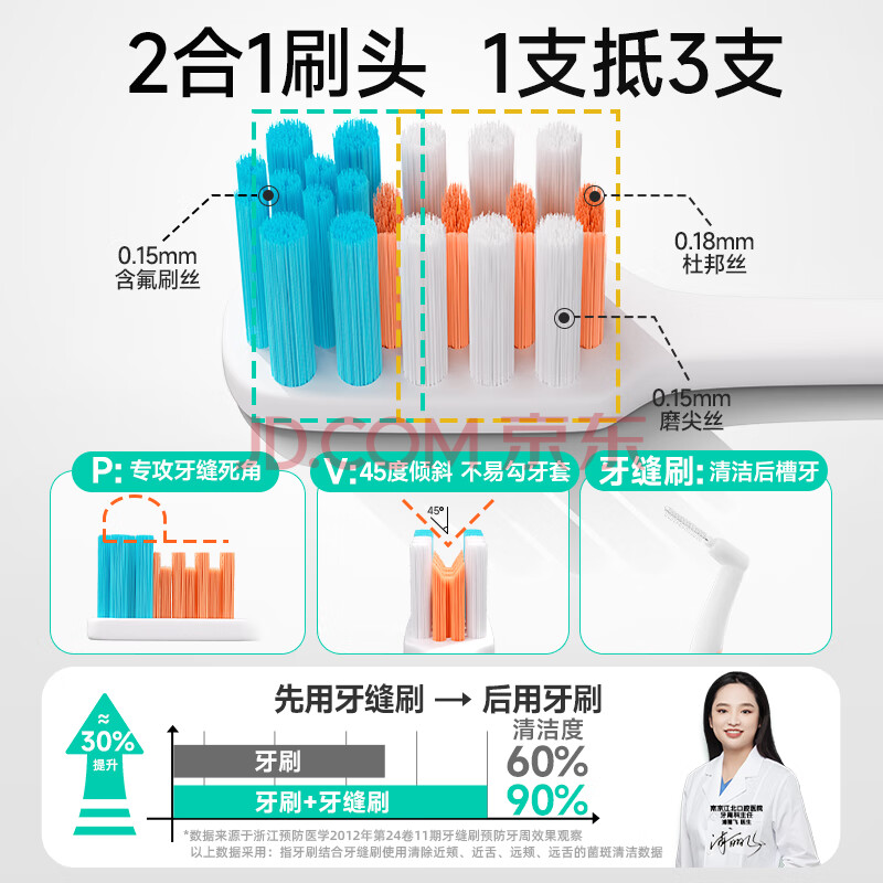 商品相册:米妍(meyarn)正畸牙刷PV型2支装 矫正牙齿专用带牙套软毛小头牙缝刷成人青少年第