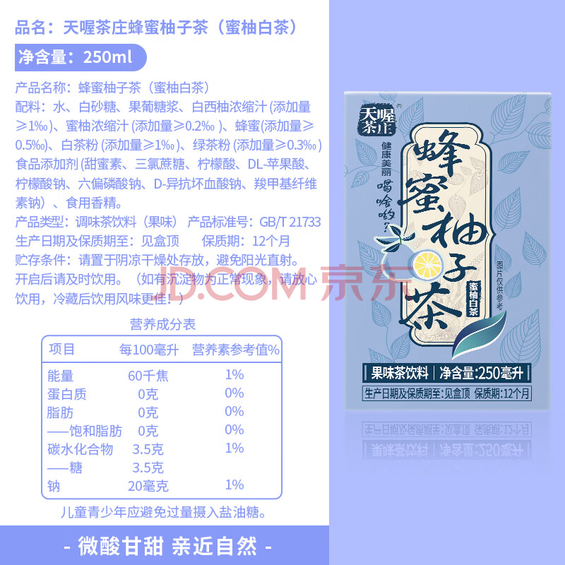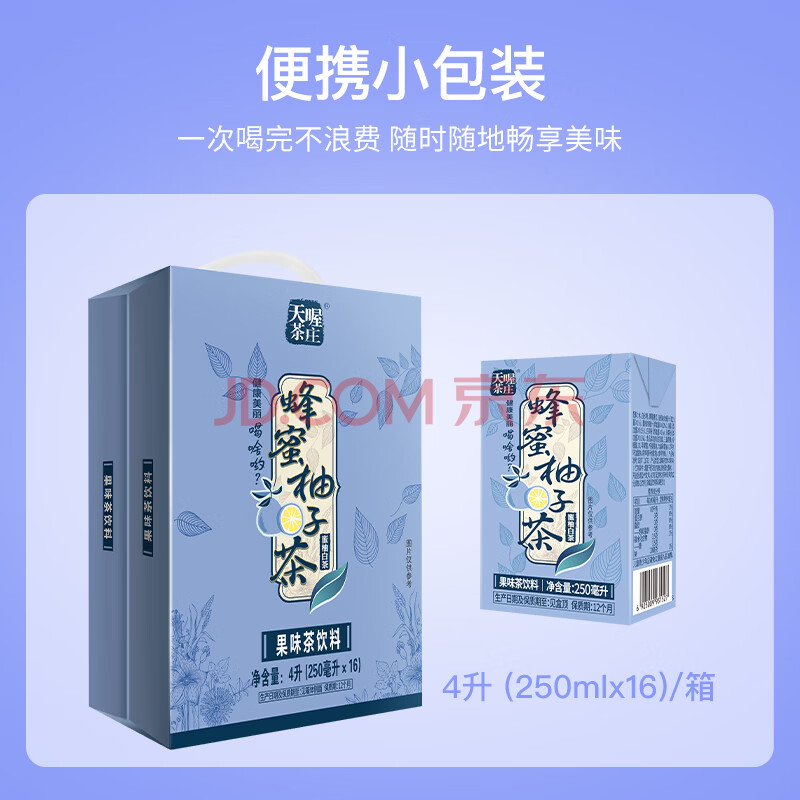 商品相册:天喔 蜂蜜柚子茶蜜柚白茶250ml*16整箱装年货礼盒果味饮品凉茶饮料第1张/共6