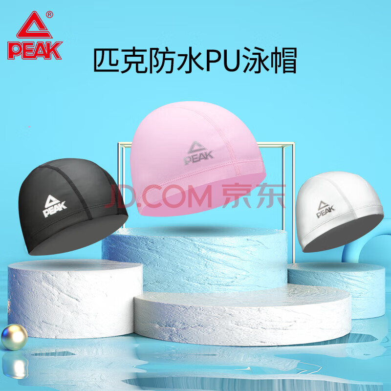 商品相册:匹克PU涂层游泳帽男女士长发护耳专业泳帽舒适不勒头游泳帽装备 银色第