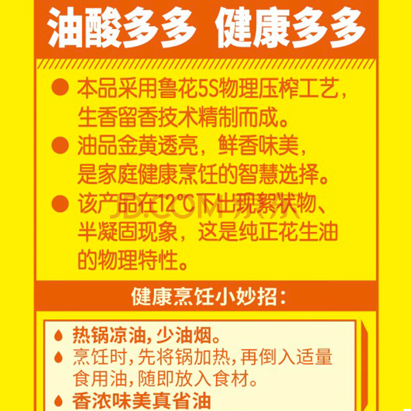 商品相册:鲁花【保真花生油】油酸多多5S压榨一级花生油5L 油酸含量大于56% 第