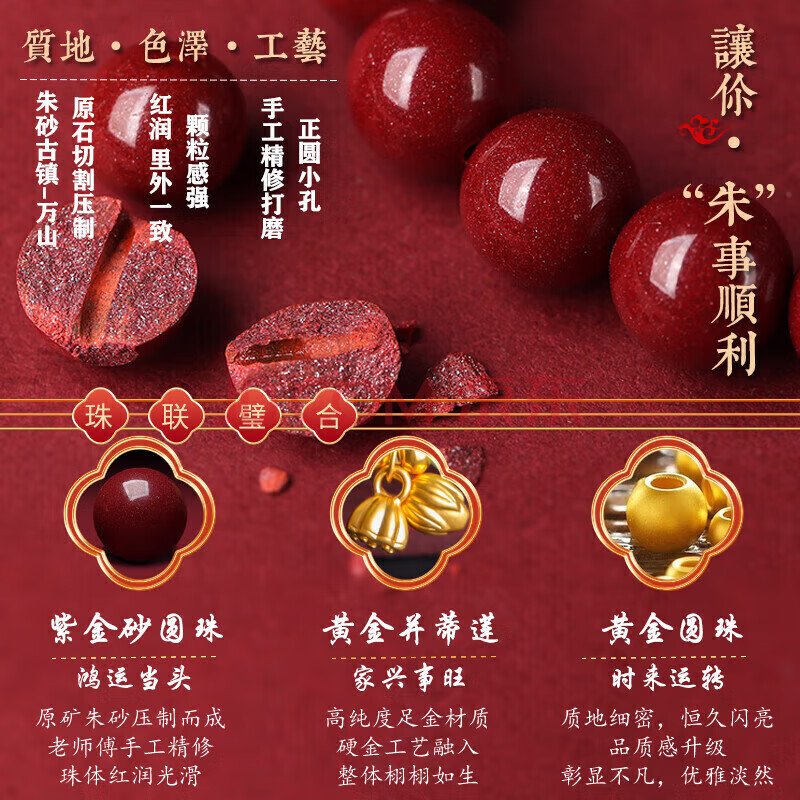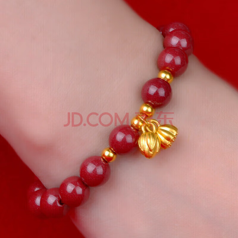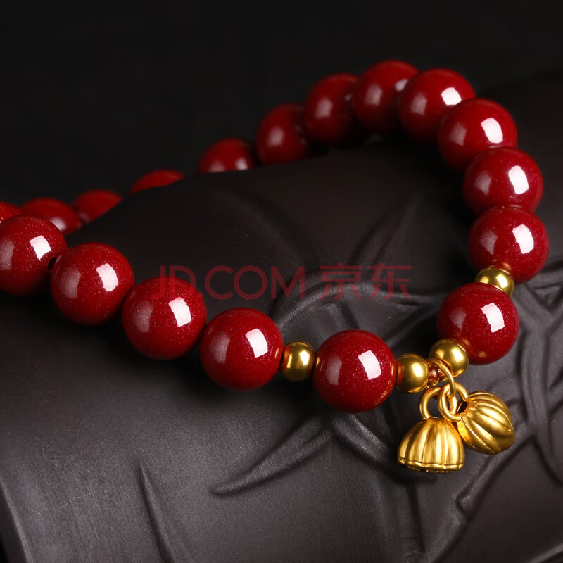 商品相册:石玥珠宝高含量8mm紫金朱砂手串黄金莲蓬本命年护身符手链男女士款礼物第