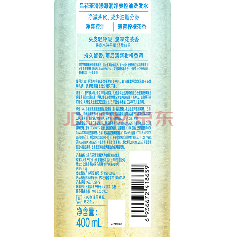 商品相册:吕(Ryo)薄荷柠檬洗发水400ml*2 净澈控油清爽去屑留香无硅油洗发膏第