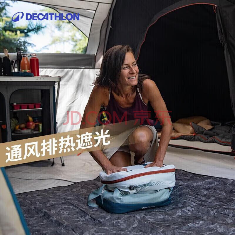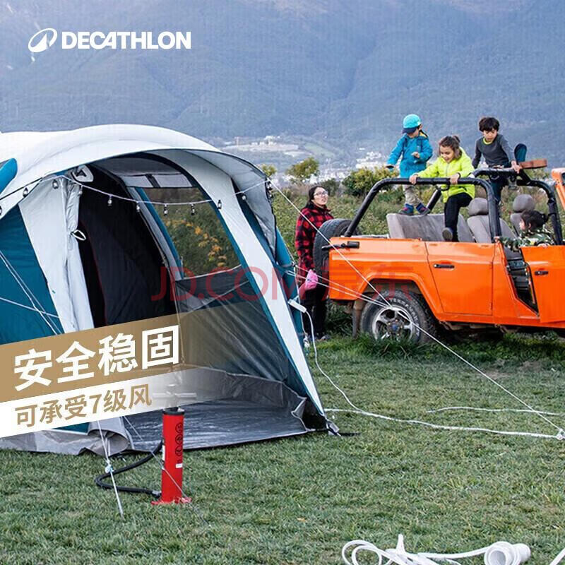 商品相册:迪卡侬充气帐篷黑胶F&B户外露营防晒排热遮光防水防风6人3室1厅-4018211第