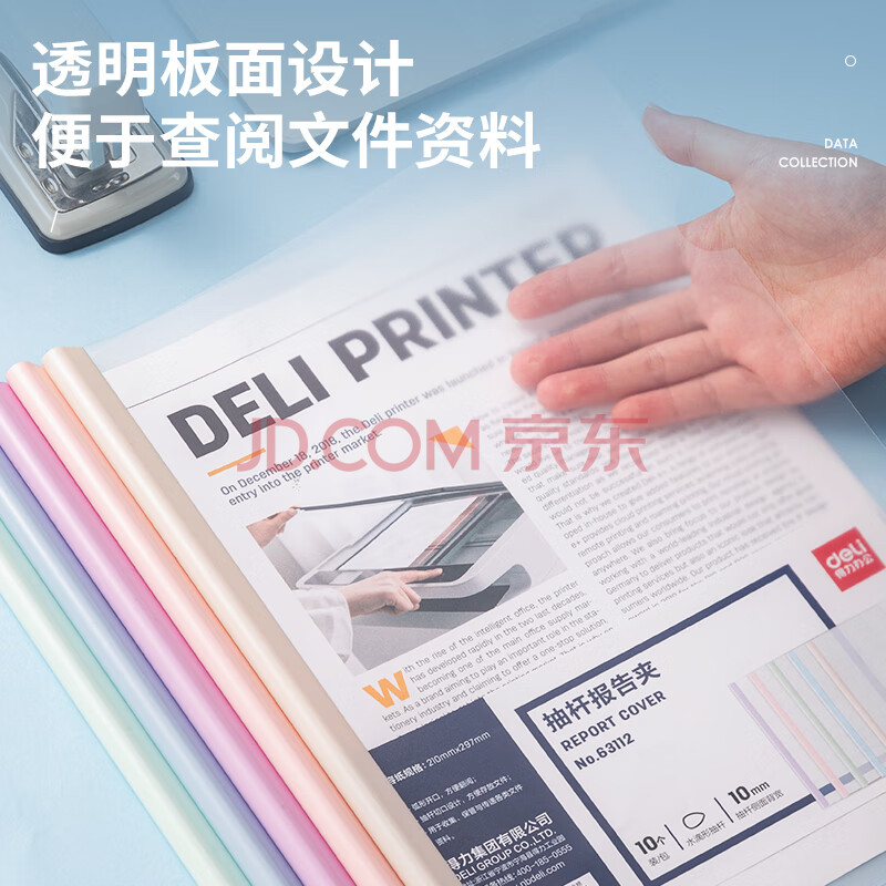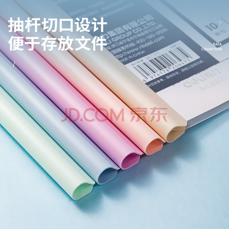 商品相册:得力(deli)10只A4/10mm透明抽杆文件夹拉杆夹水滴杆 学生考试简历报告夹会议资料产检收纳 马卡龙色系63112第