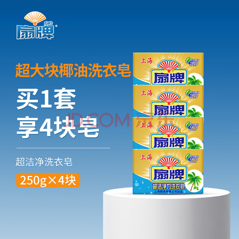 商品相册:扇牌 超洁净力洗衣皂250g*4块透明皂肥皂香胰子洗衣服椰油去污无磷第