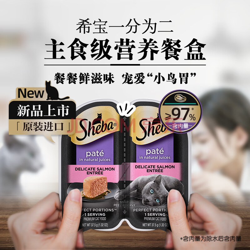商品相册:希宝(Sheba)一分为二营养餐盒主食级罐香嫩鸡肉三文鱼配方75g单盒进口猫零食第