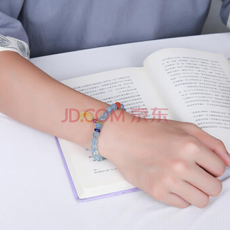 商品相册:妍韵珠宝8mm精品海蓝宝手串南红玛瑙青金石蜜蜡旗袍水晶玛瑙女士手链第