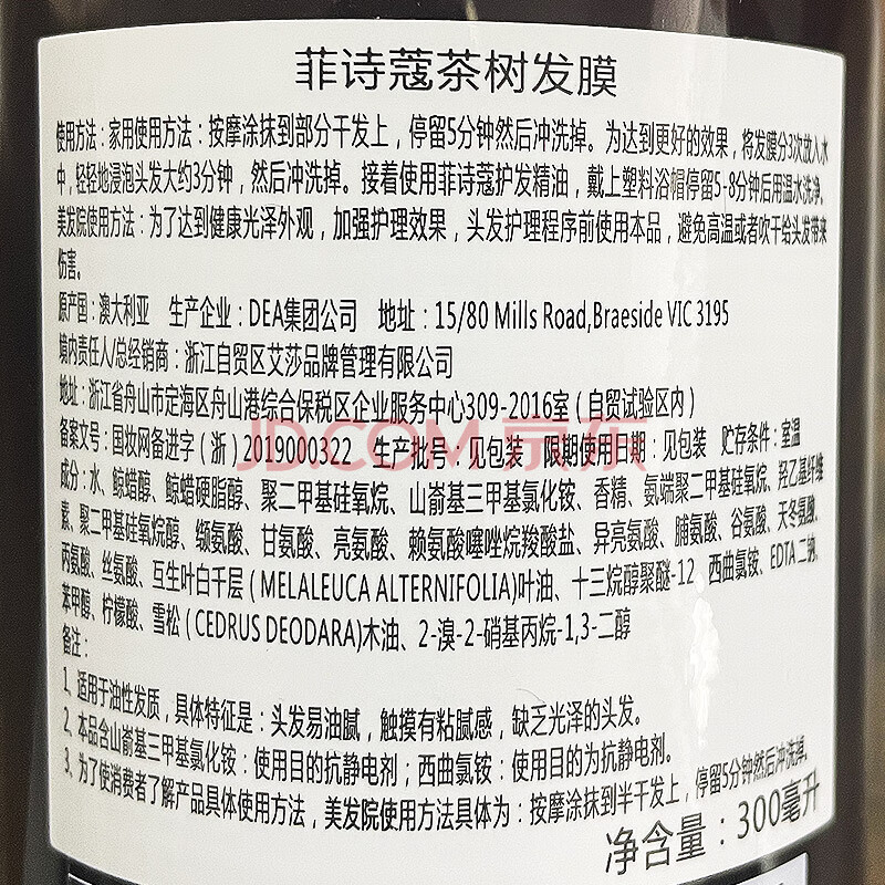 商品相册:菲诗蔻(Ficcecode)茶树发膜300ml改善毛躁柔顺光泽澳洲进口护发素第