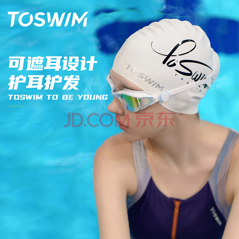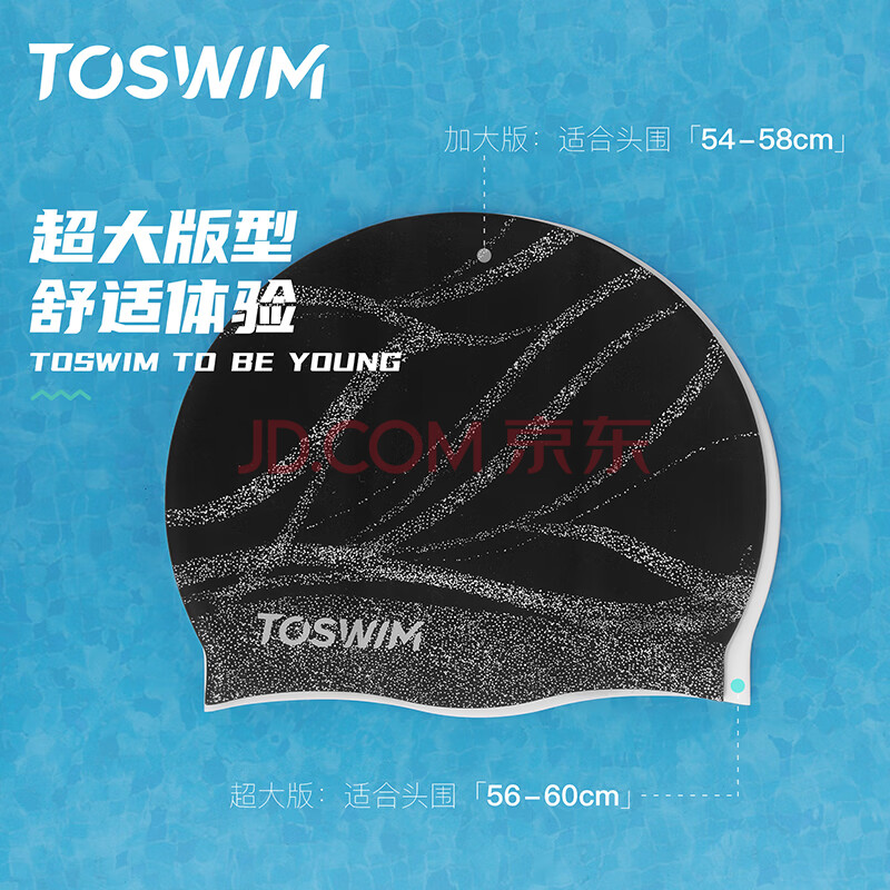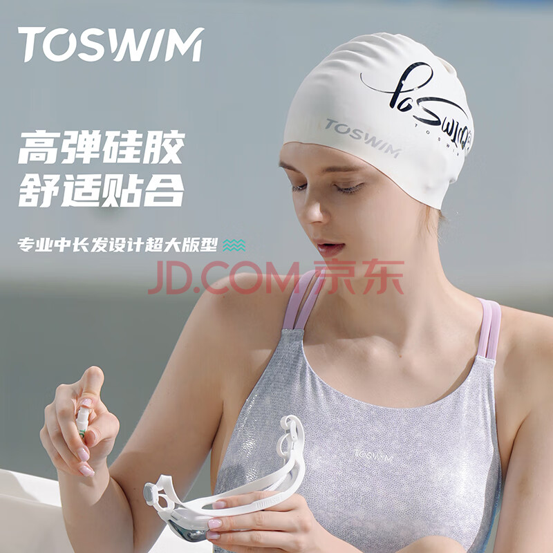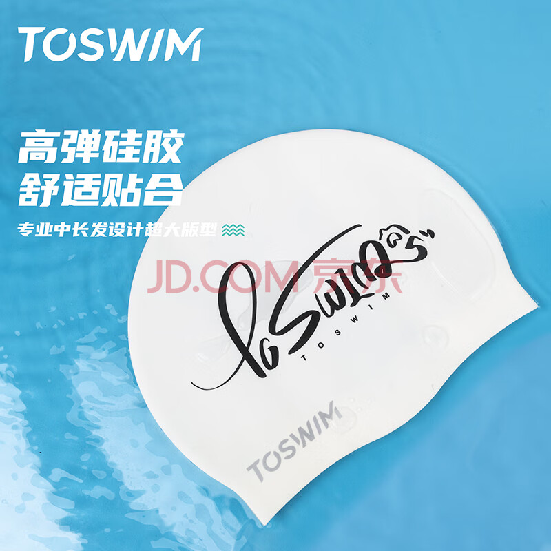 商品相册:TOSWIM拓胜泳帽 女 硅胶游泳帽大号长发防水 成人儿童通用 字母随想第