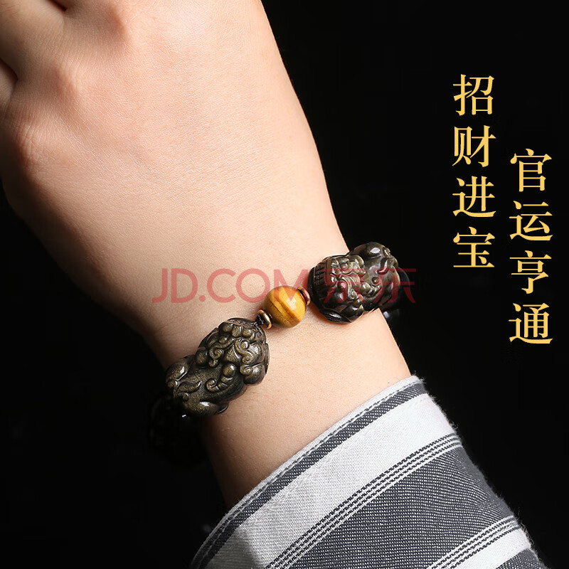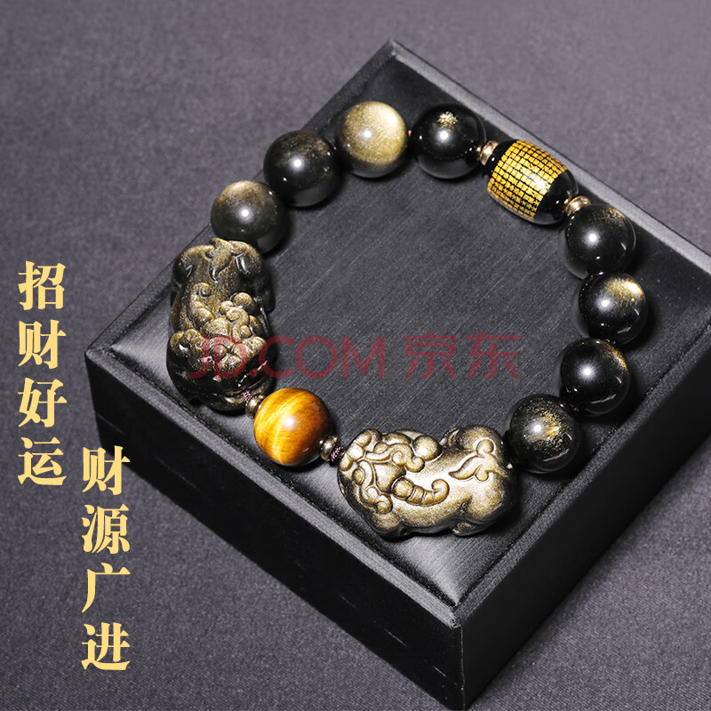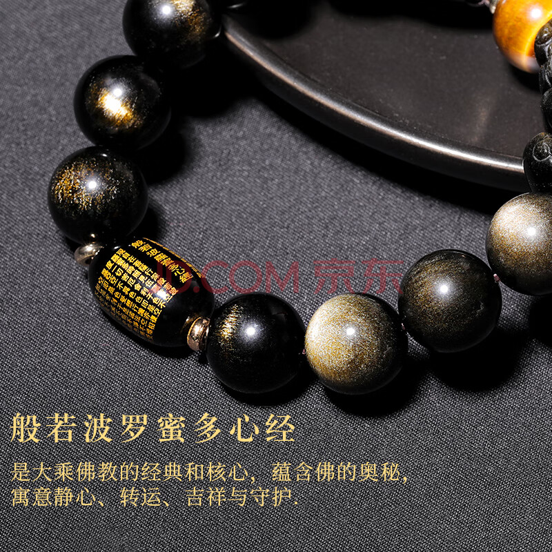 商品相册:石传百世天然黑曜石手串金曜石貔貅手链男士心经护身符虎眼石生日礼物第