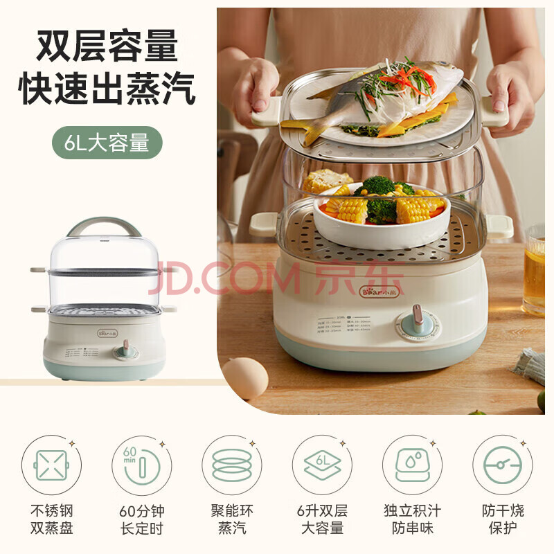 商品相册:小熊电蒸锅分体式带不锈钢蒸盘 DZG-C60W9第