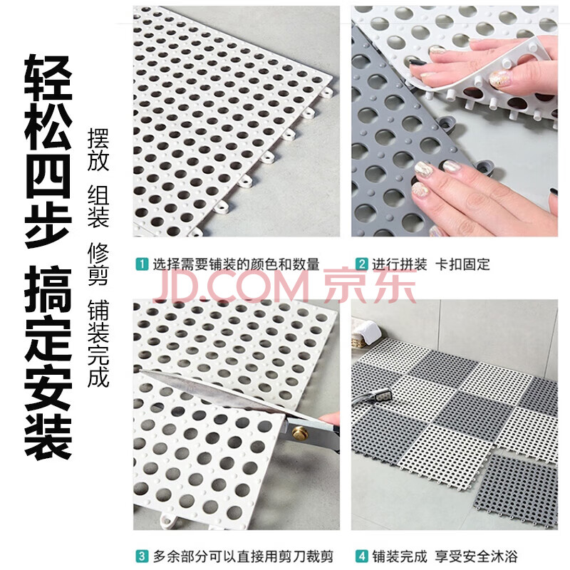 商品相册:梦庭 浴室防滑垫淋浴卫生间地垫浴室垫30*30cm 4片装第