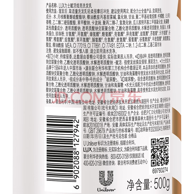 商品相册:力士玻尿酸赋活炫亮强韧洗发水500g受损暗哑胶原蛋白水光瓶留香洗发露第