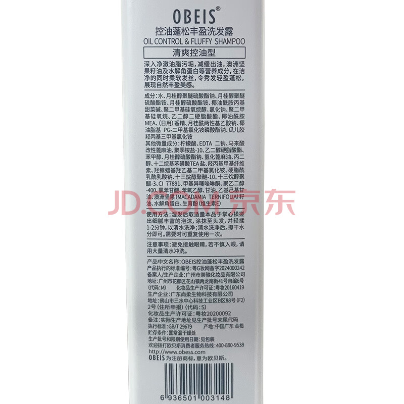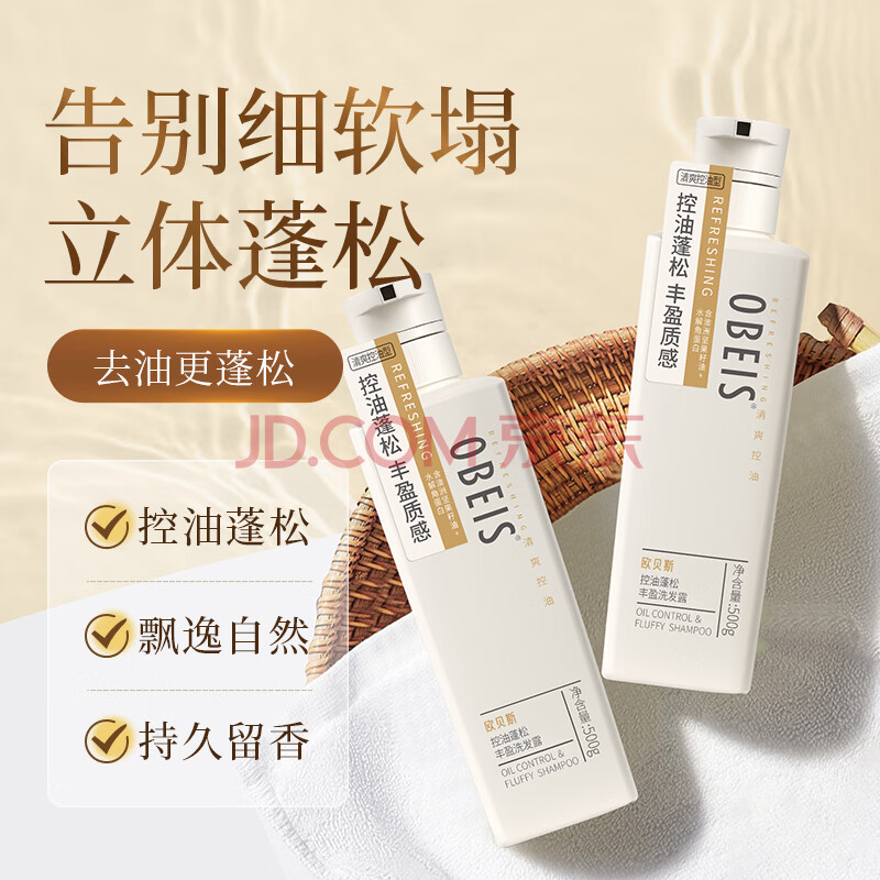 商品相册:欧贝斯(obeis)洗发水控油持久蓬松洗发露清爽去油洗发膏洗头水500ml男女士通用第