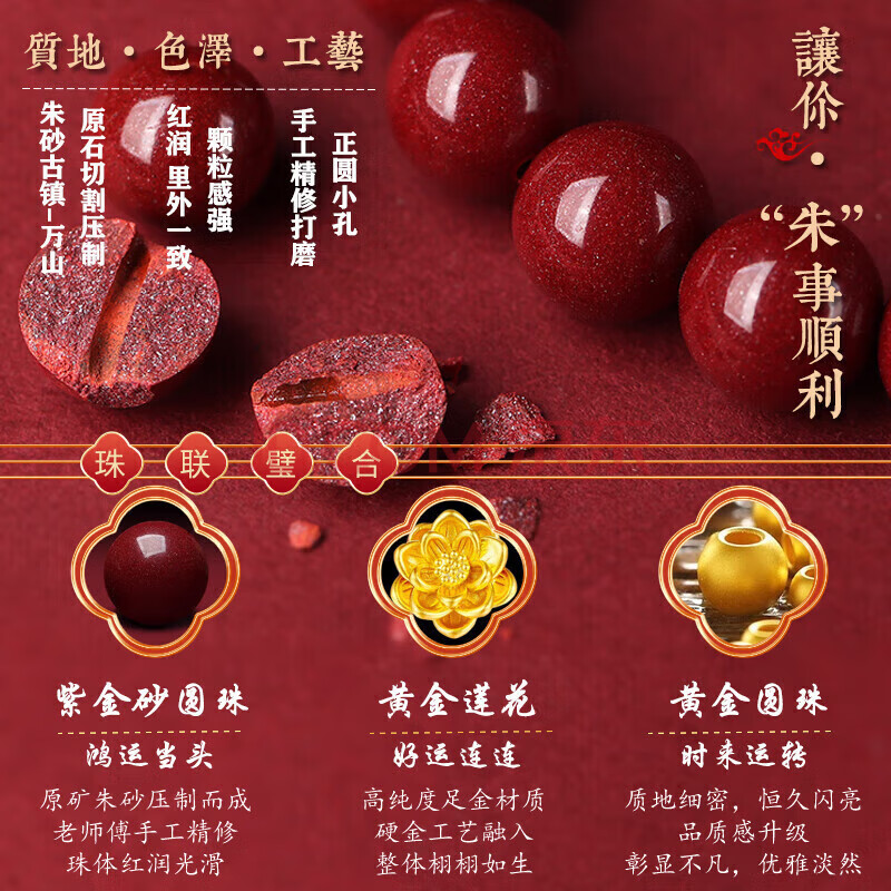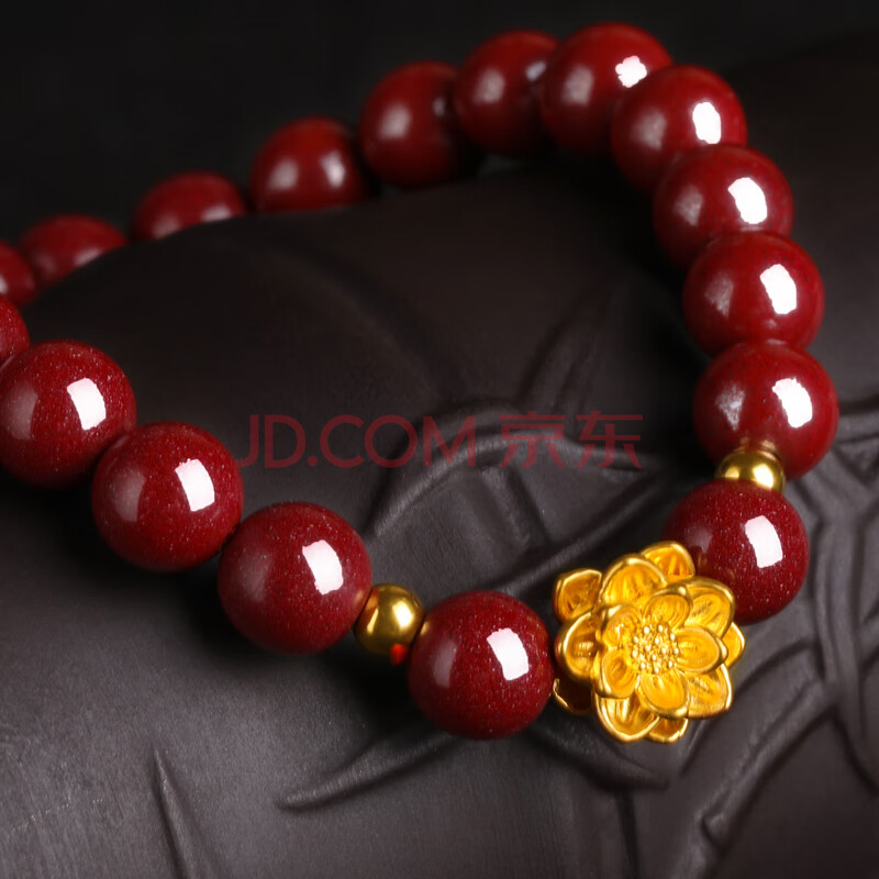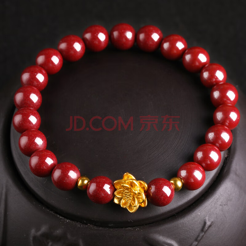 商品相册:石玥珠宝高含量8mm紫金朱砂手串黄金莲花本命年护身符手链男女士款礼物第