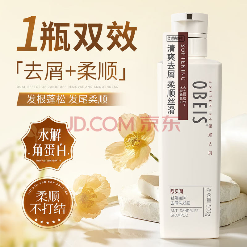 商品相册:欧贝斯(obeis)丝滑柔顺去屑洗发水蓬松止痒洗发露洗头膏男女士通用洗头水500ml第