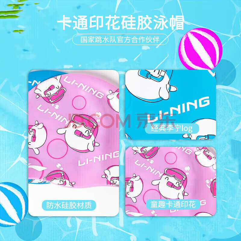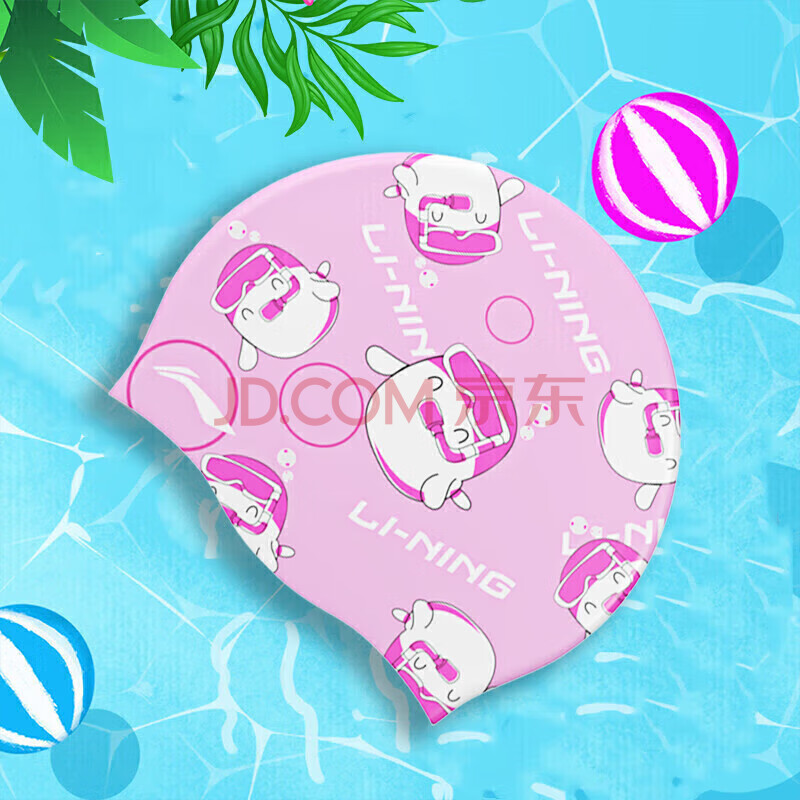 商品相册:李宁(lining)儿童泳帽硅胶长发男女童可爱不勒头卡通印花游泳帽LSJN910-2粉色第