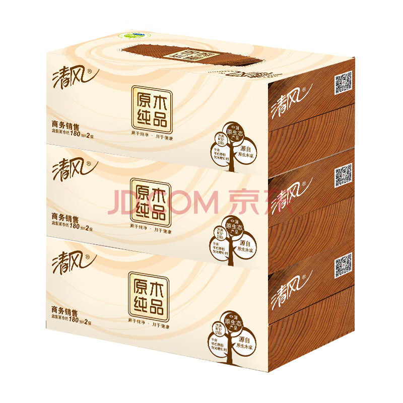 商品相册:清风抽纸 擦手纸2层180抽*36盒 盒装抽纸餐巾纸 酒店商务商用整箱批发第