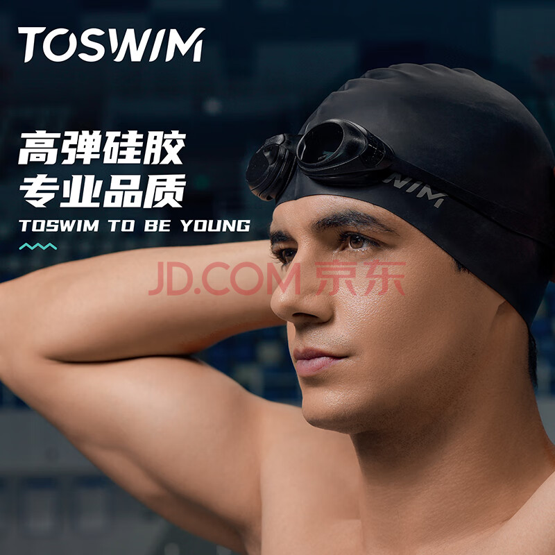 商品相册:TOSWIM拓胜泳帽男女款不勒头长发防水护耳硅胶游泳帽 墨鱼黑加大版第