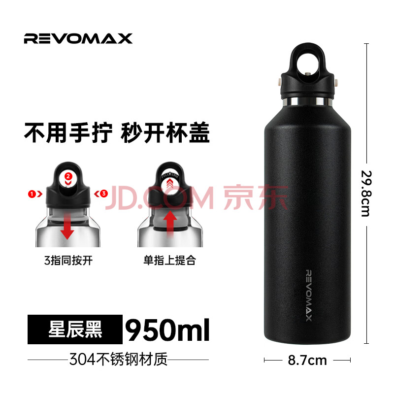 商品相册:REVOMAX锐虎保温杯男士户外登山保温保冷大容量运动水杯子星辰黑950ml第