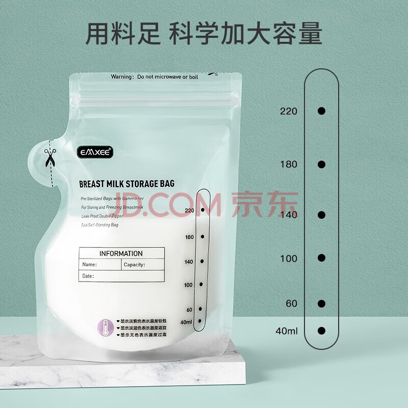 商品相册:嫚熙(EMXEE)储奶袋一次性母乳装奶壶嘴型储存袋冷藏装奶保鲜储存袋加厚防漏第