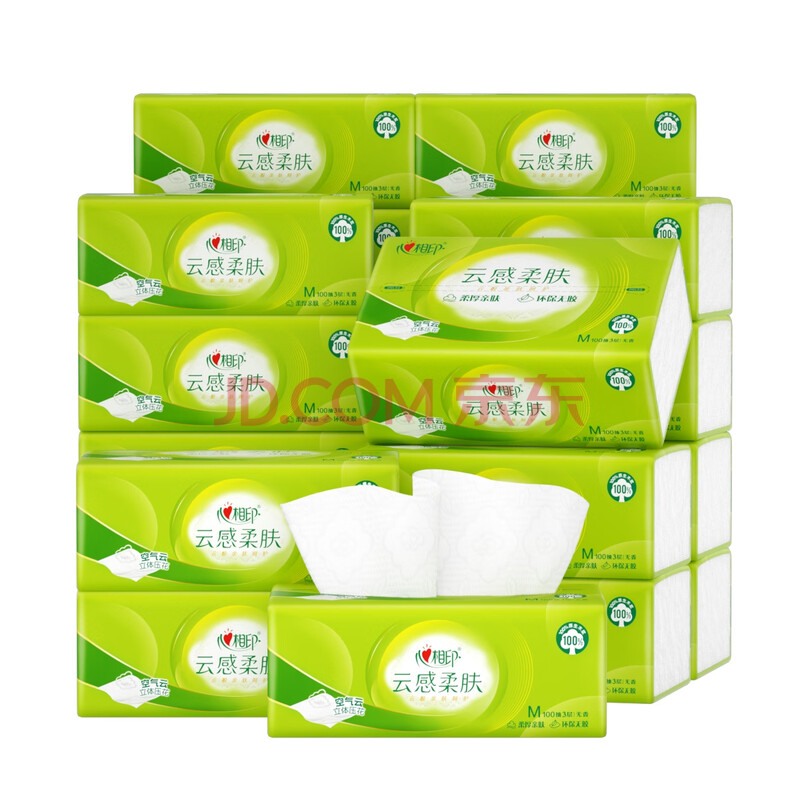 商品相册:心相印抽纸 云感柔肤面巾纸 3层100抽*24包真M码 纸巾 卫生纸 抽纸整箱第