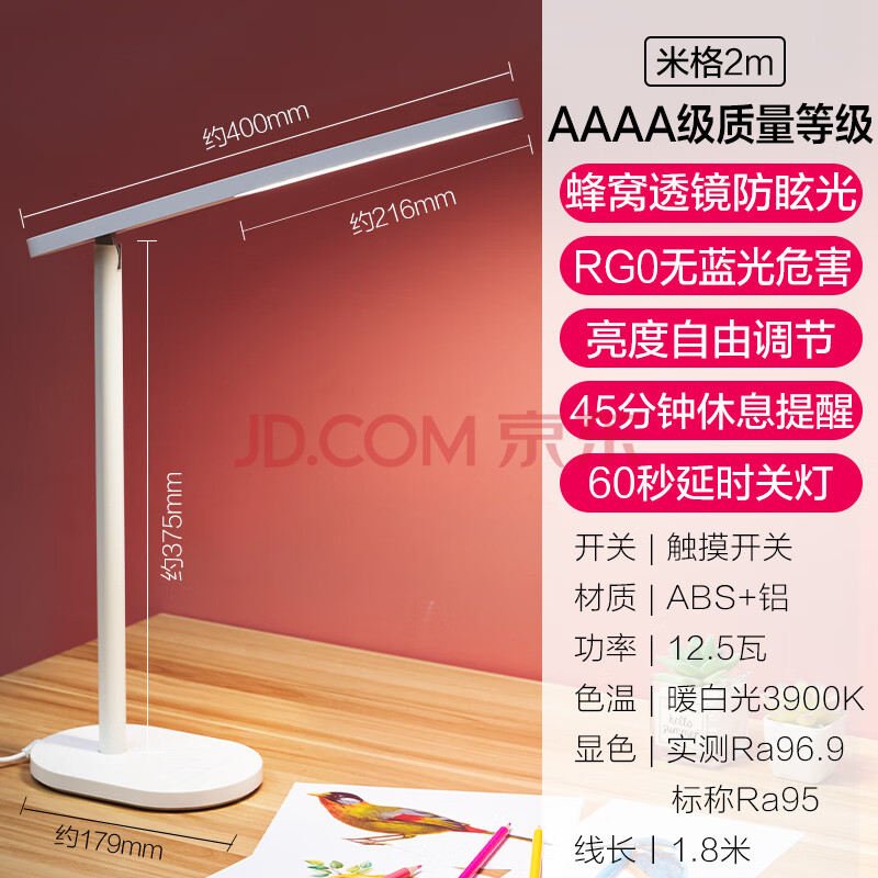 商品相册:欧普照明(OPPLE)AAAA级书桌宿舍卧室儿童无蓝光台灯护眼灯学生学习台灯 米格2M第