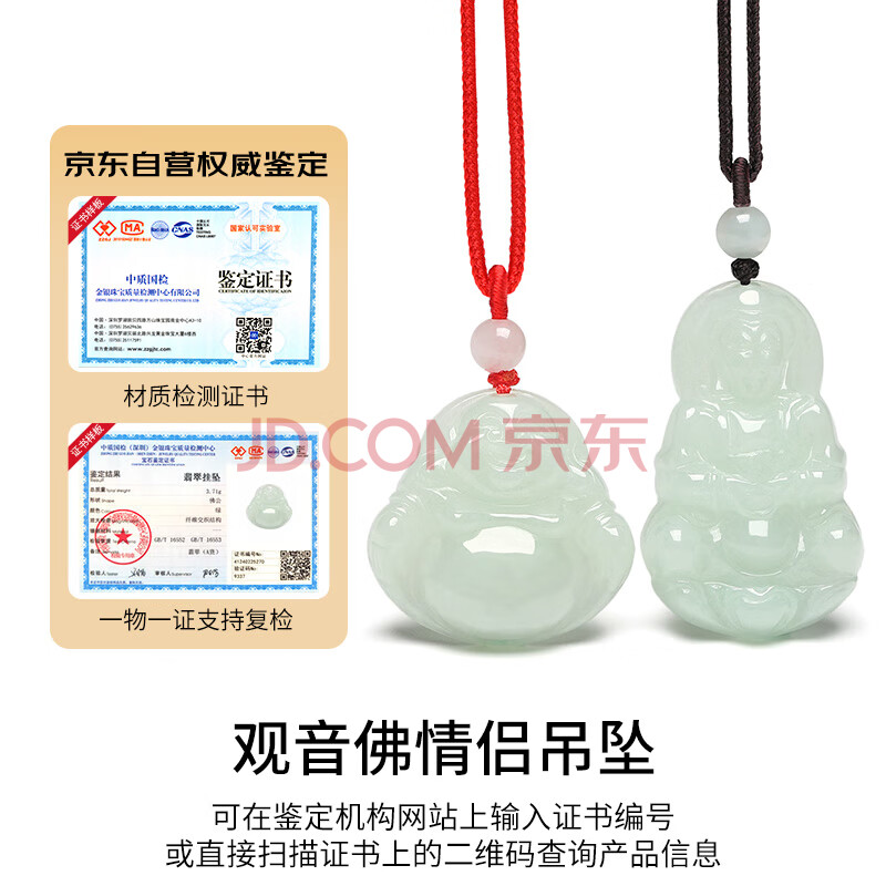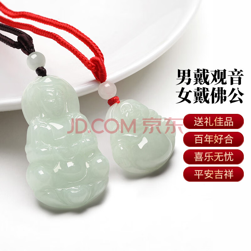 商品相册:凤禧珠宝翡翠玉观音玉佛吊坠男女士情侣款一对天然玉石项链生日礼物第