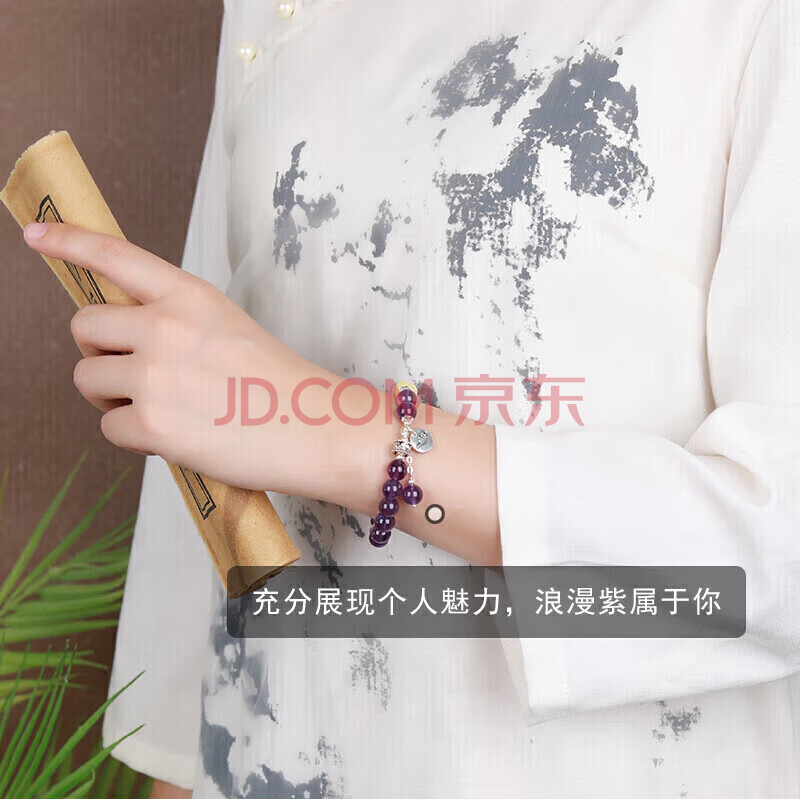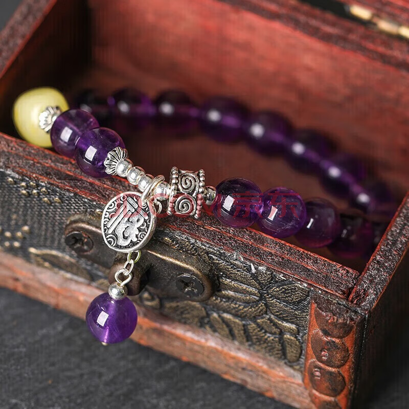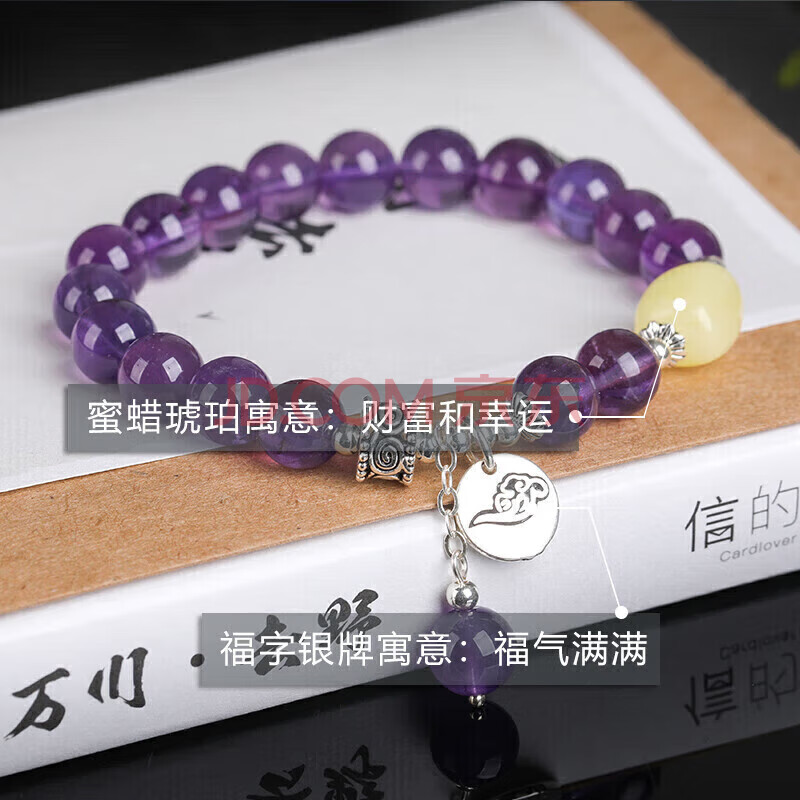 商品相册:妍韵珠宝8mm精品紫水晶手链S925银福蜜蜡九紫离火天然紫水晶手串男女士款第