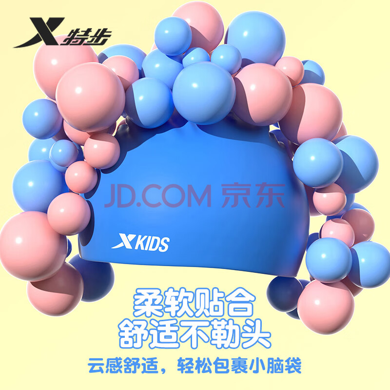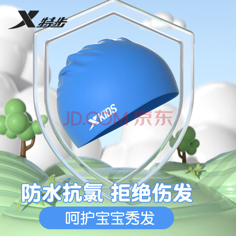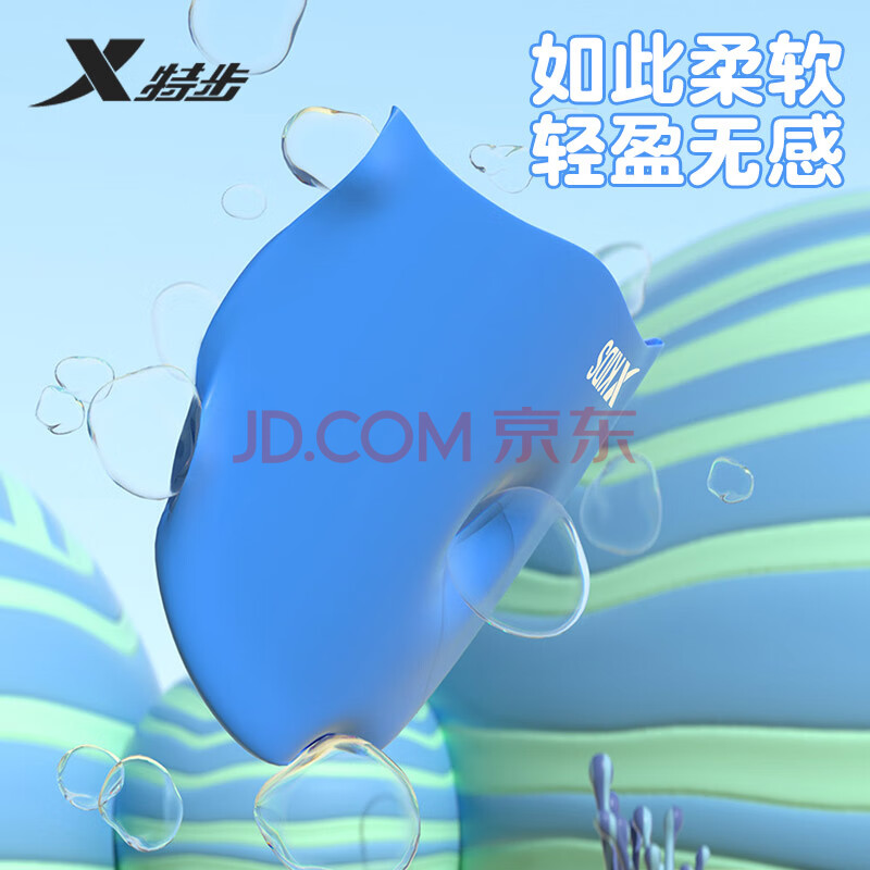 商品相册:特步(XTEP)儿童泳帽青少年男女童舒适防水游泳帽专业游泳硅胶泳帽 蓝色第