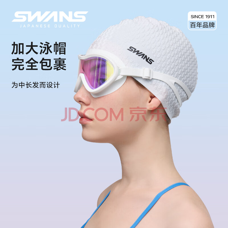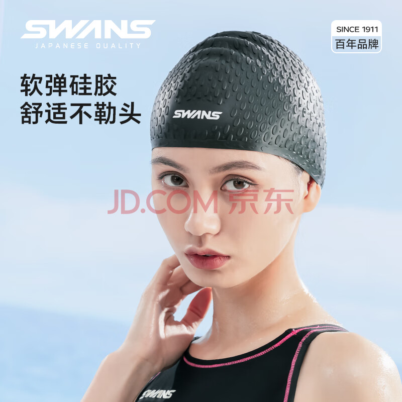 商品相册:速安视泳帽女男防水不勒头游泳水滴帽长发护耳硅胶加大号游泳帽116灰色第