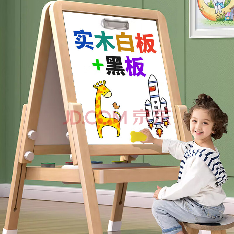 商品相册:QZMTOY儿童超大画板双面磁性绘画工具双面升降黑板宝宝教学写字白板涂鸦第