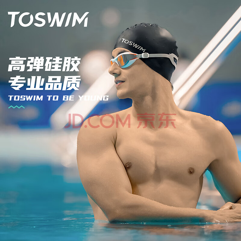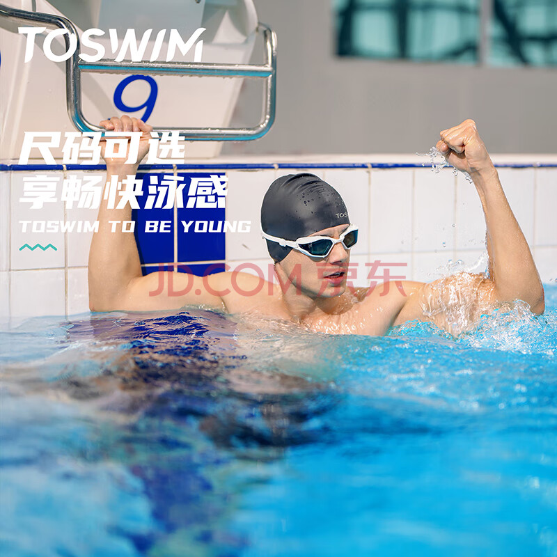商品相册:TOSWIM拓胜泳帽男女款不勒头长发加大防水大头围护耳硅胶游泳帽 墨鱼黑第