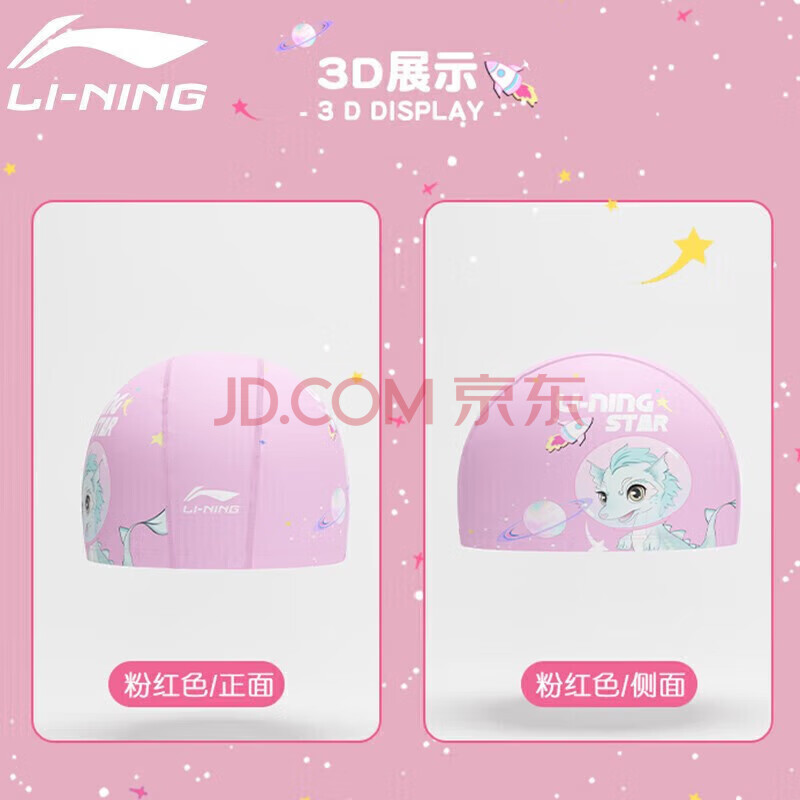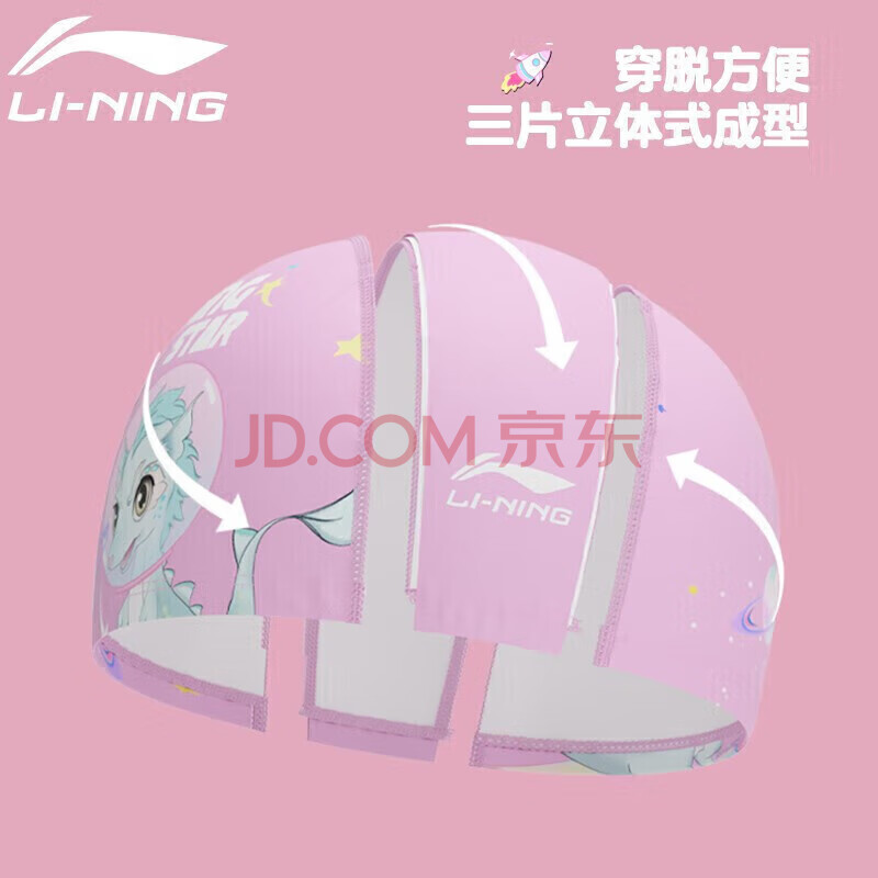 商品相册:李宁 LI-NING 儿童泳帽 男女童卡通护耳不勒头游泳布帽 LNMT616-2粉色第1张/共4