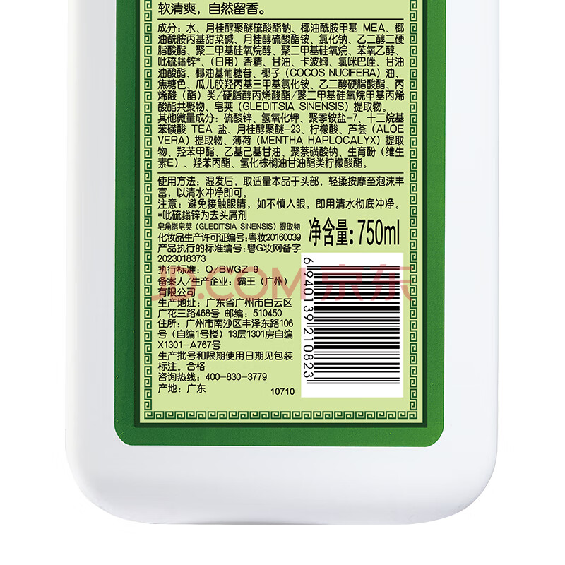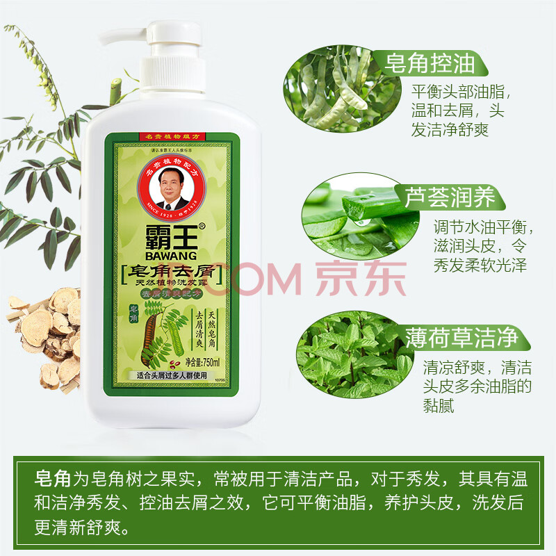 商品相册:霸王洗发水皂角去屑洗发露750ml (清爽控油 去屑止痒 洗头膏洗头水)第