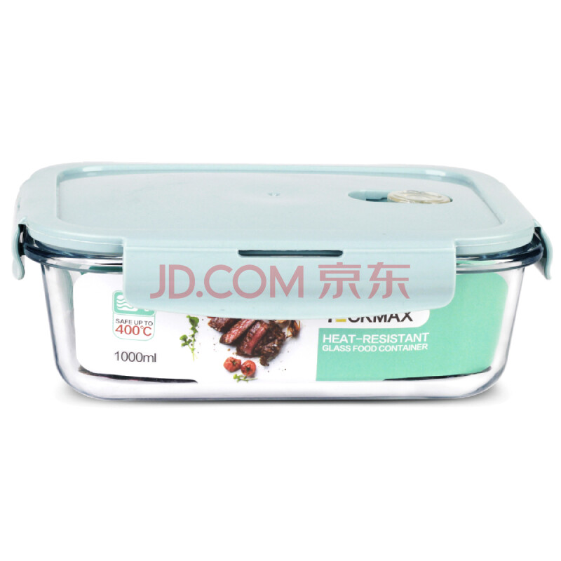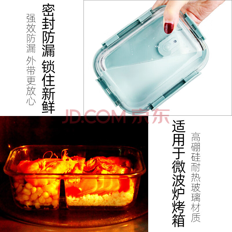 商品相册:德玛斯耐热玻璃保鲜盒微波炉饭盒冰箱收纳上班族便当碗 北欧蓝长1000ml第