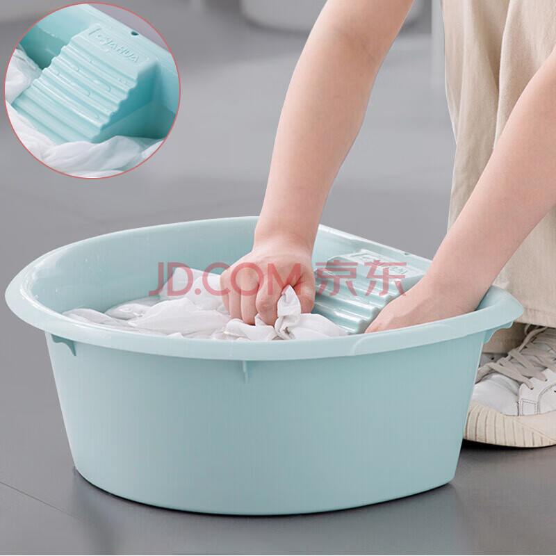 商品相册:茶花洗衣盆带搓衣板家用加厚塑料盆子搓衣盆洗衣一体 1只随机颜色第