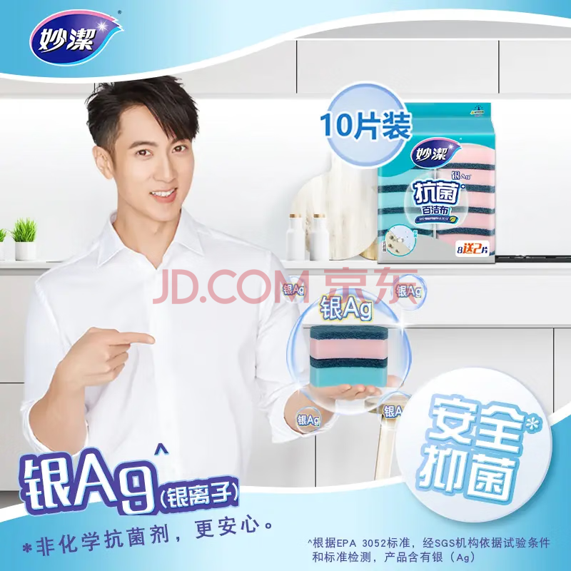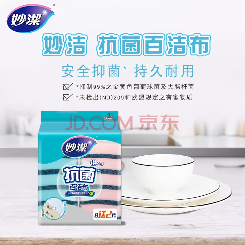 商品相册:妙洁 抗菌海绵百洁布 10片装 抑菌率99%清洁洗碗巾抹布易吸水厨房家用第