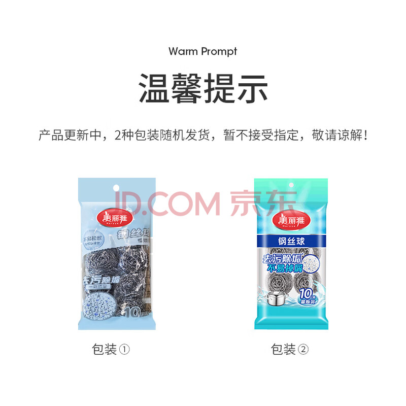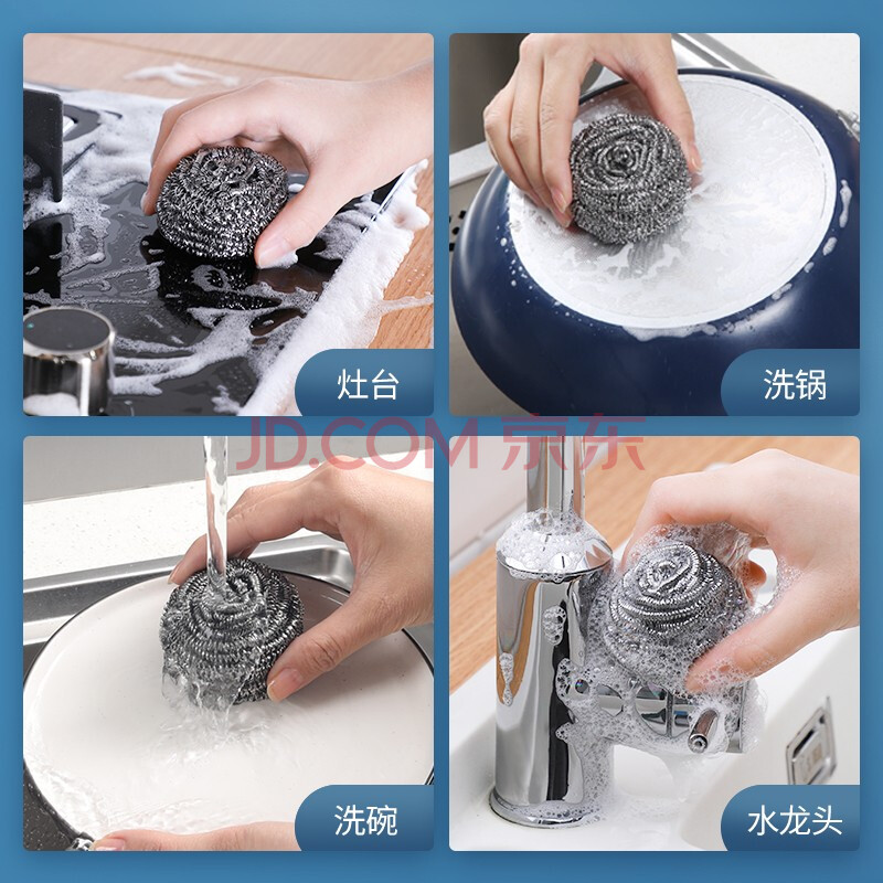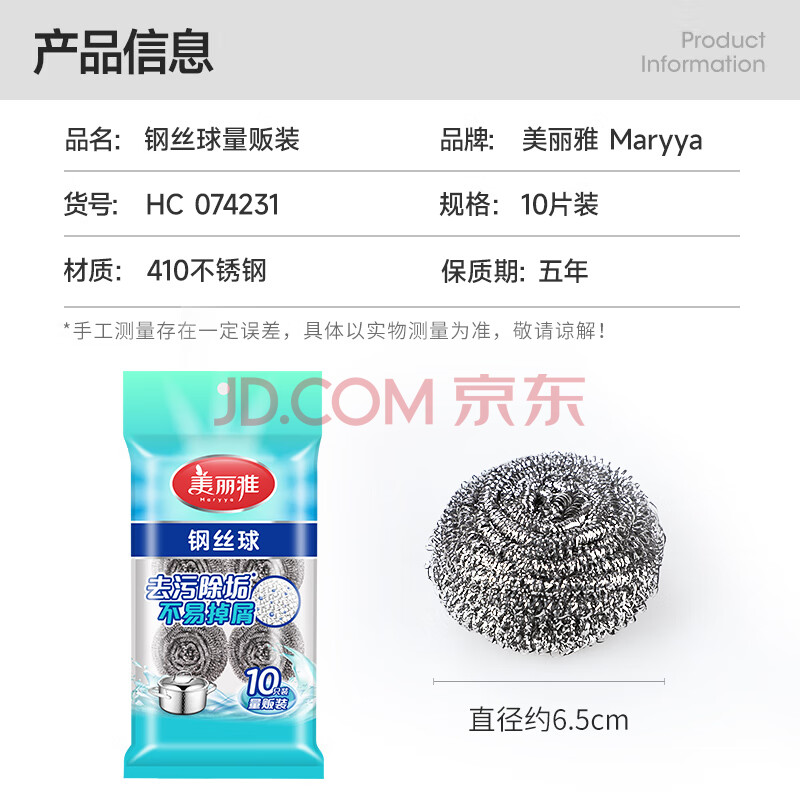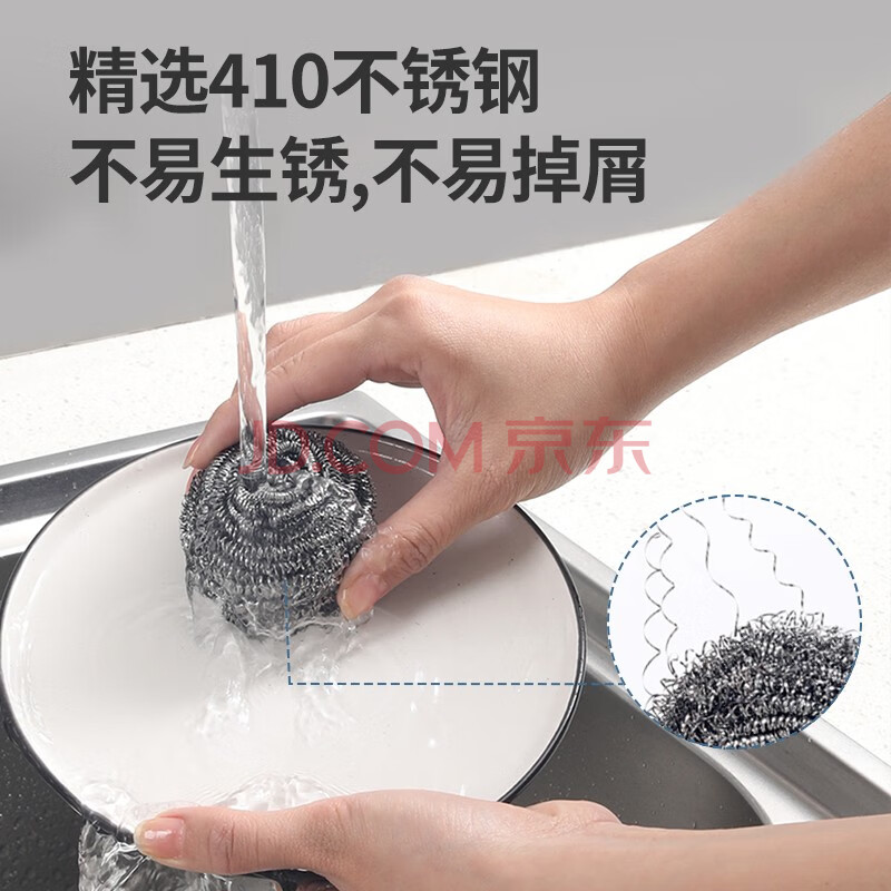 商品相册:美丽雅钢丝球10只清洁球厨房抹布高强度410不锈钢洗碗刷锅不易掉丝大号第
