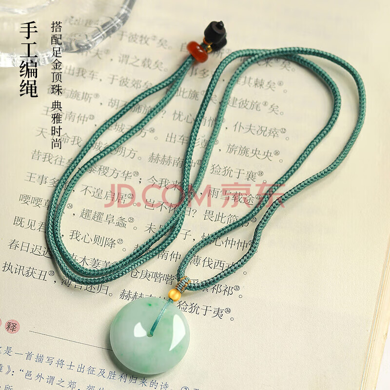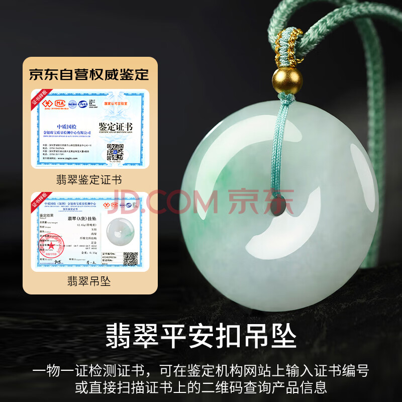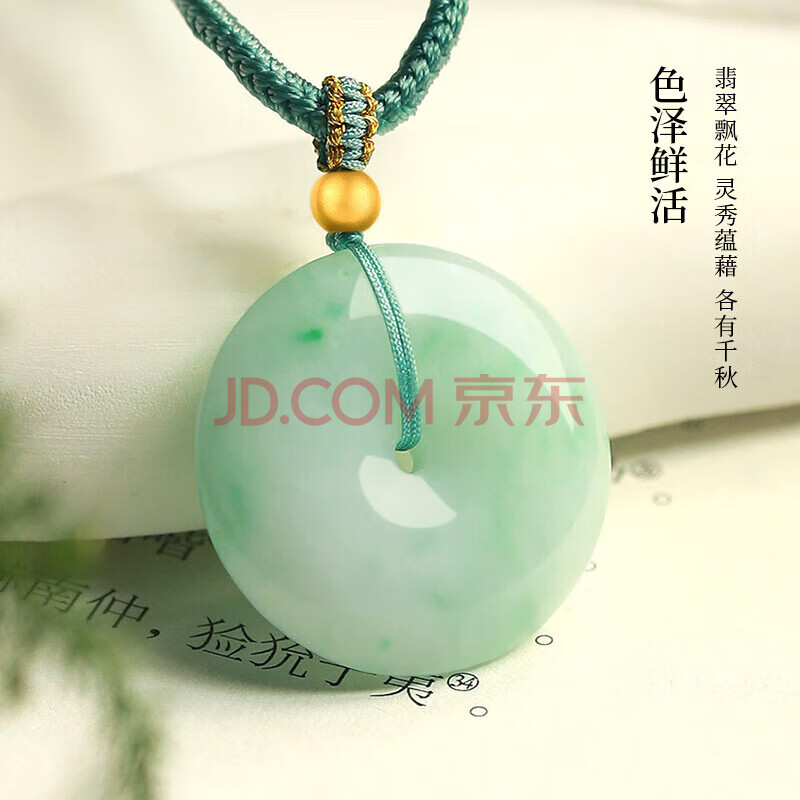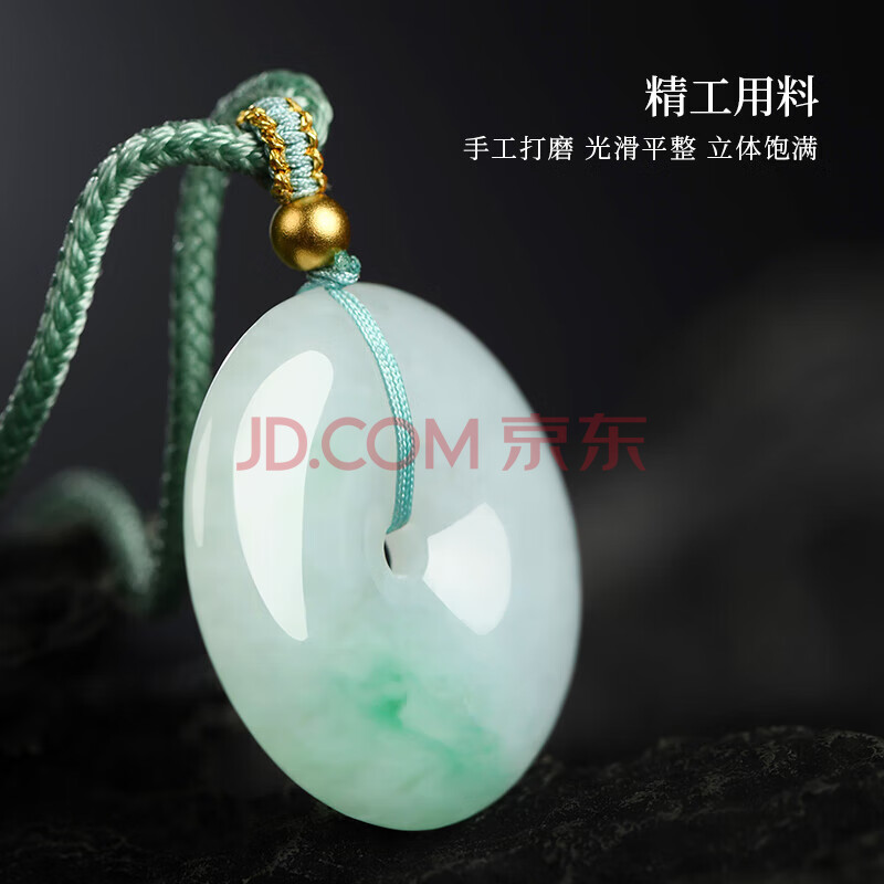 商品相册:凤禧珠宝翡翠平安扣吊坠天然缅甸飘阳绿玉坠男女士款玉石项链生日礼物第