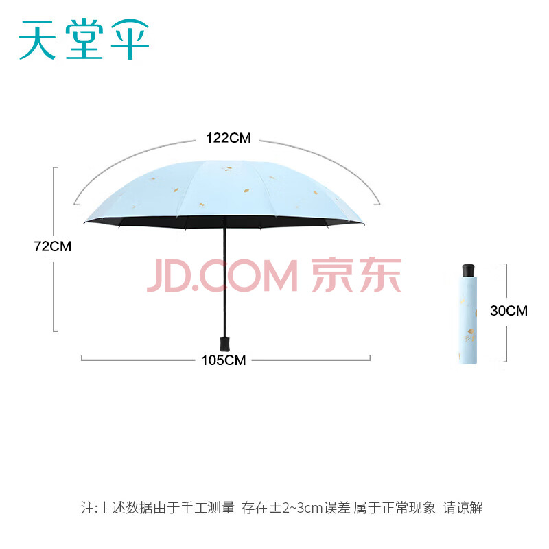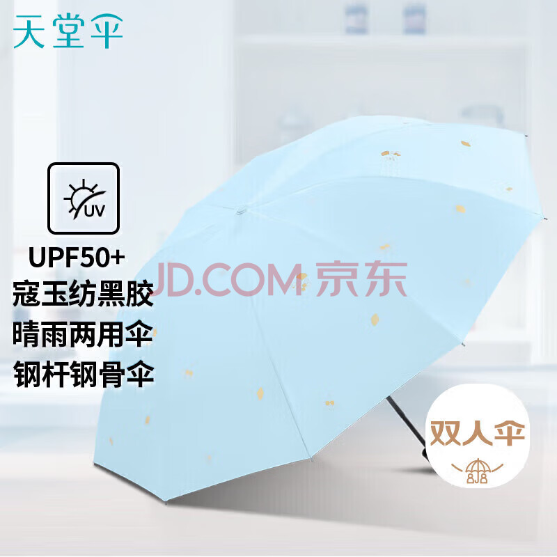 商品相册:天堂 双人晴雨伞三折 遮阳伞太阳伞10骨加大加固抗风大伞 硕果净空蓝第