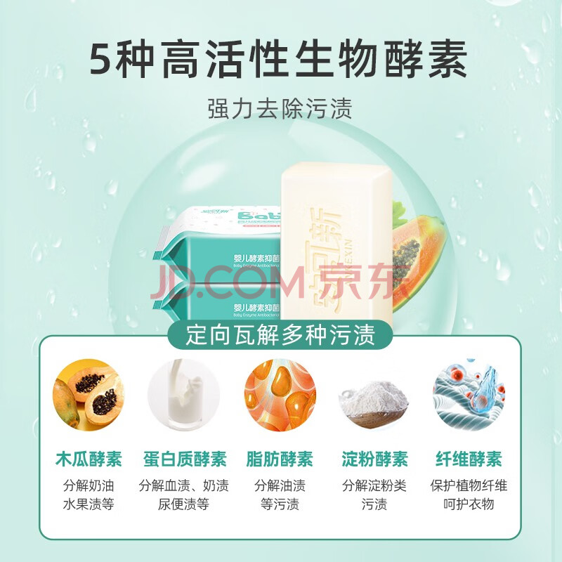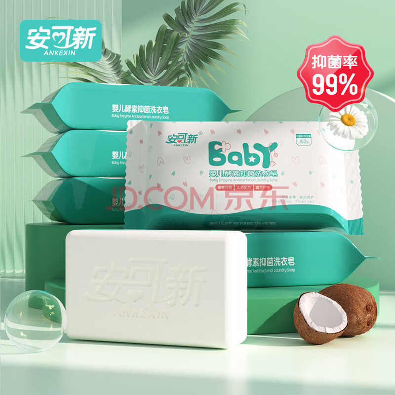 商品相册:安可新 婴儿洗衣皂抑菌99% 宝宝植物酵素肥皂 儿童香皂洗衣液皂150g*5包第