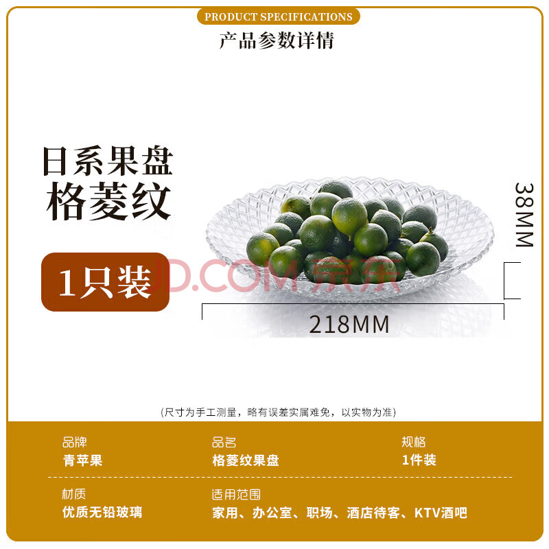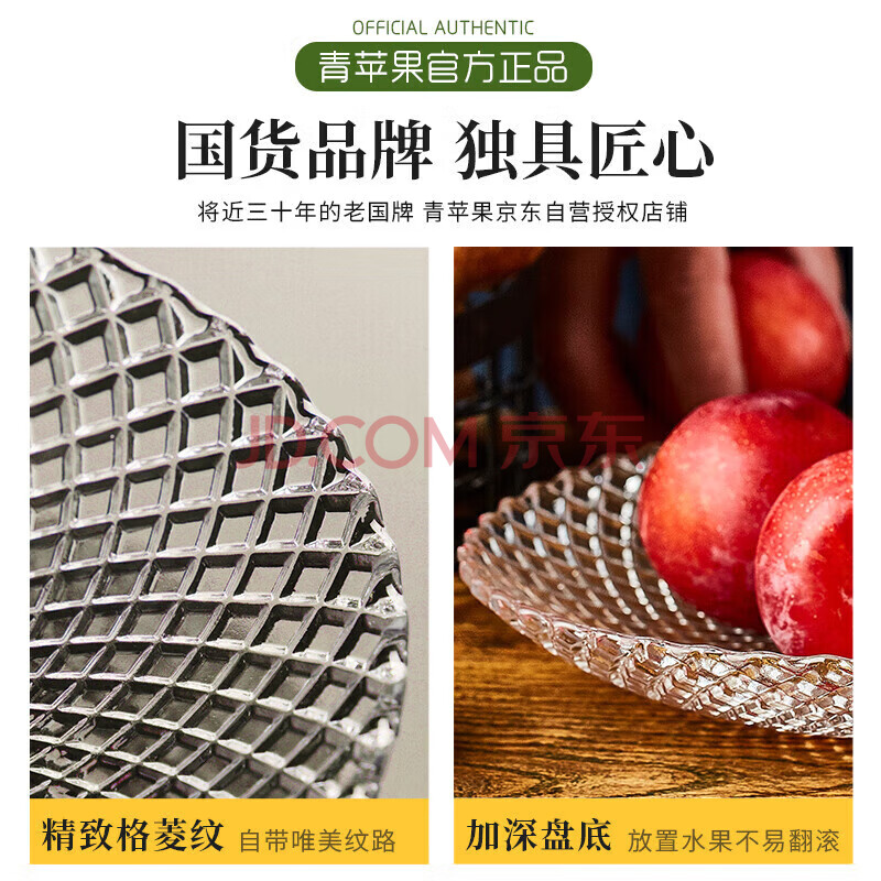 商品相册:青苹果水晶光泽玻璃水果盘轻奢家用客厅会所婚庆装饰8.5英寸第