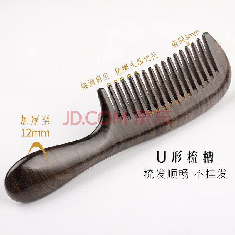 商品相册:紫韵梳香宽齿型特长大号原木整料黑檀木梳子女士男士母亲节礼物送妈妈M-24第