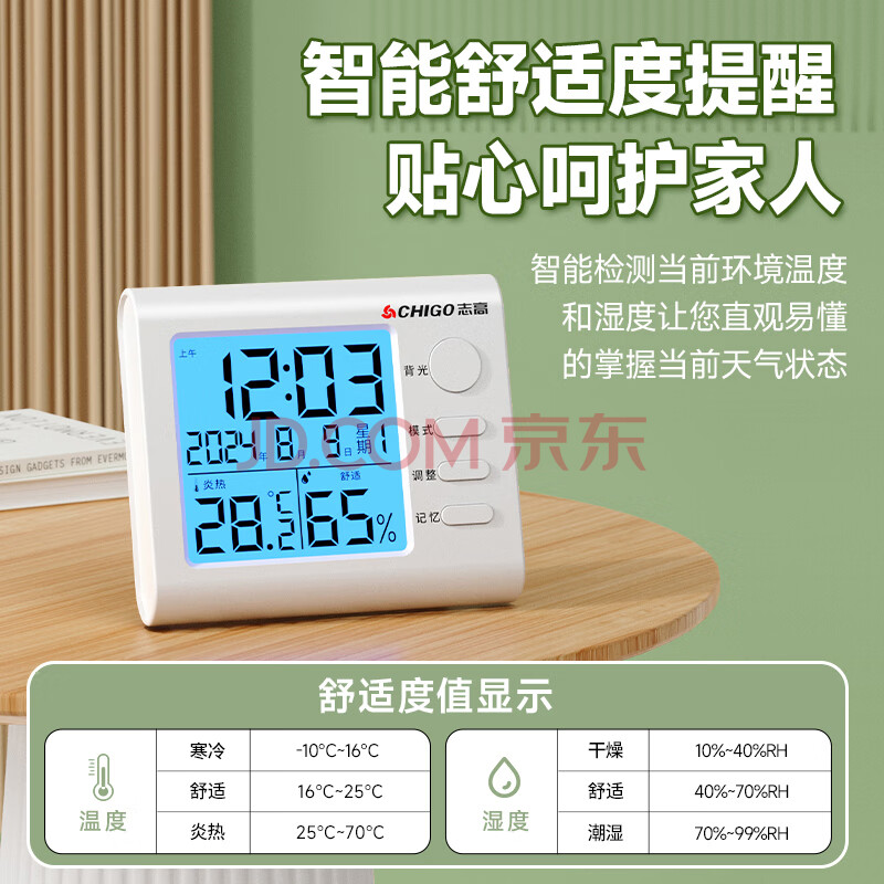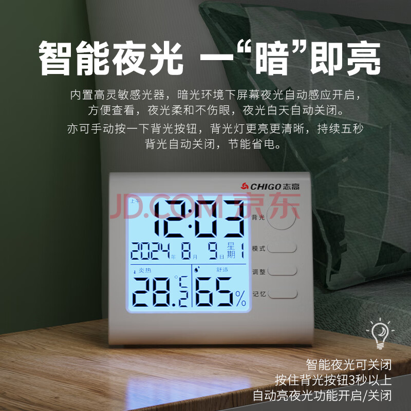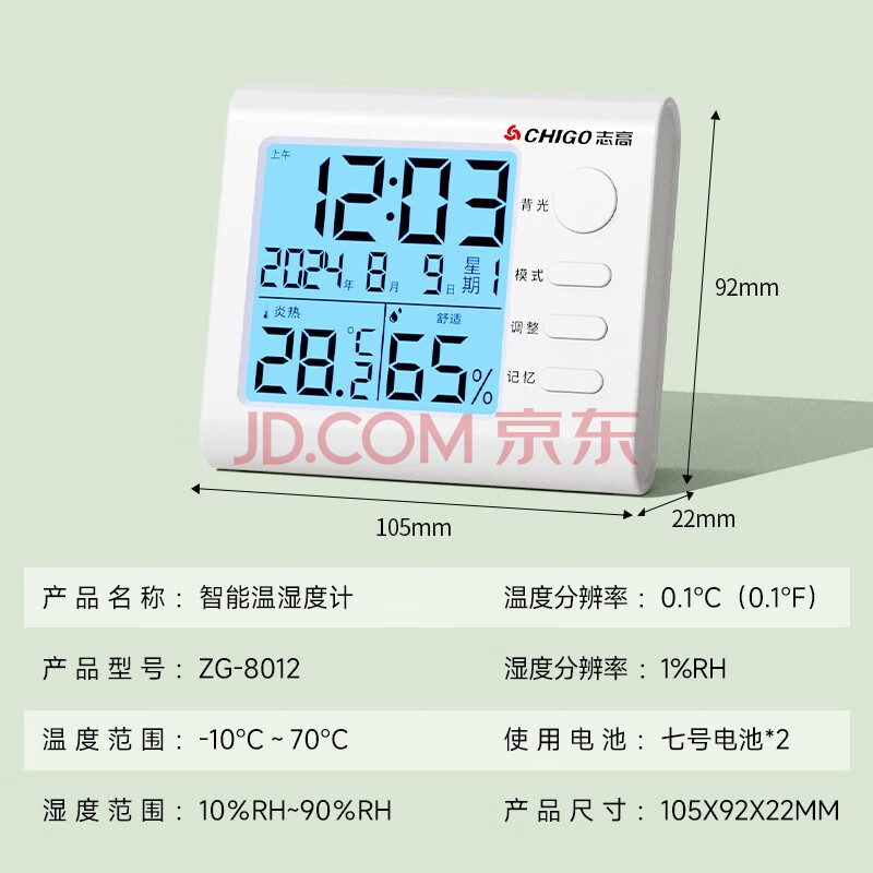 商品相册:志高(Chigo)电子温度计室内婴儿房高精度温湿度计室温计时钟温度表ZG-8012第