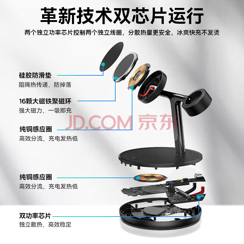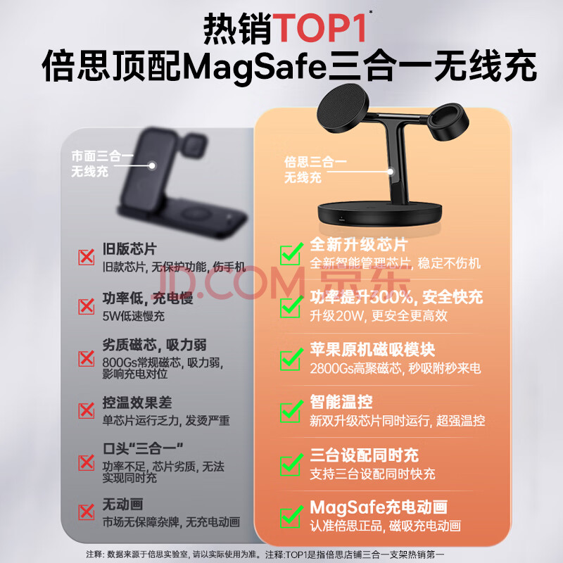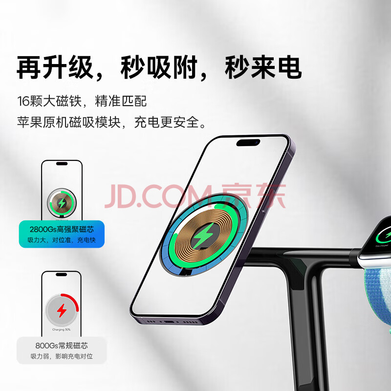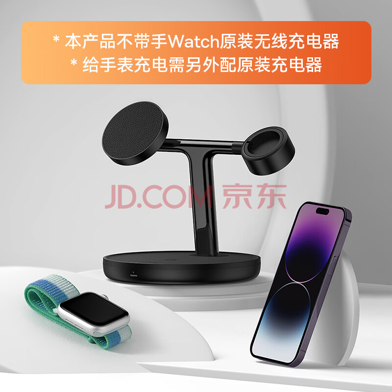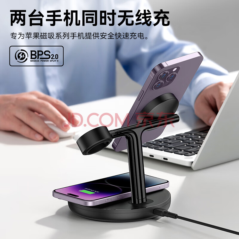 商品相册:倍思 苹果三合一无线充电器Magsafe磁吸支架20W快充适用于iPhone17/16/15/14ProMax手机耳机iWatch手表第